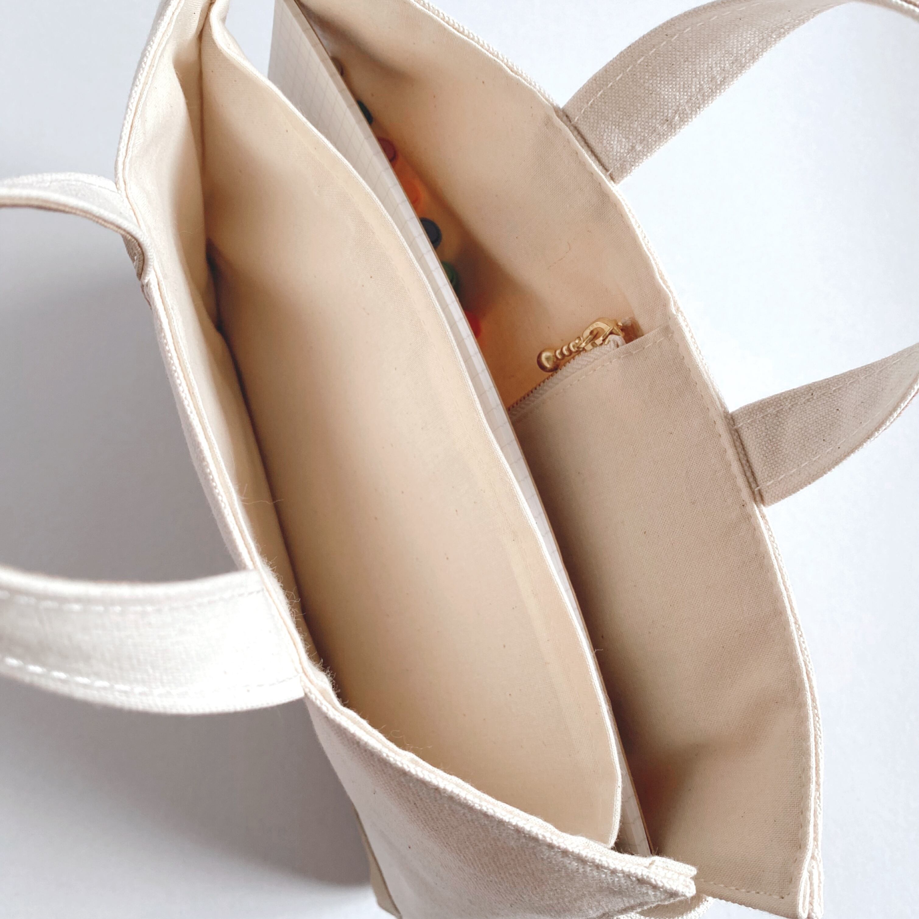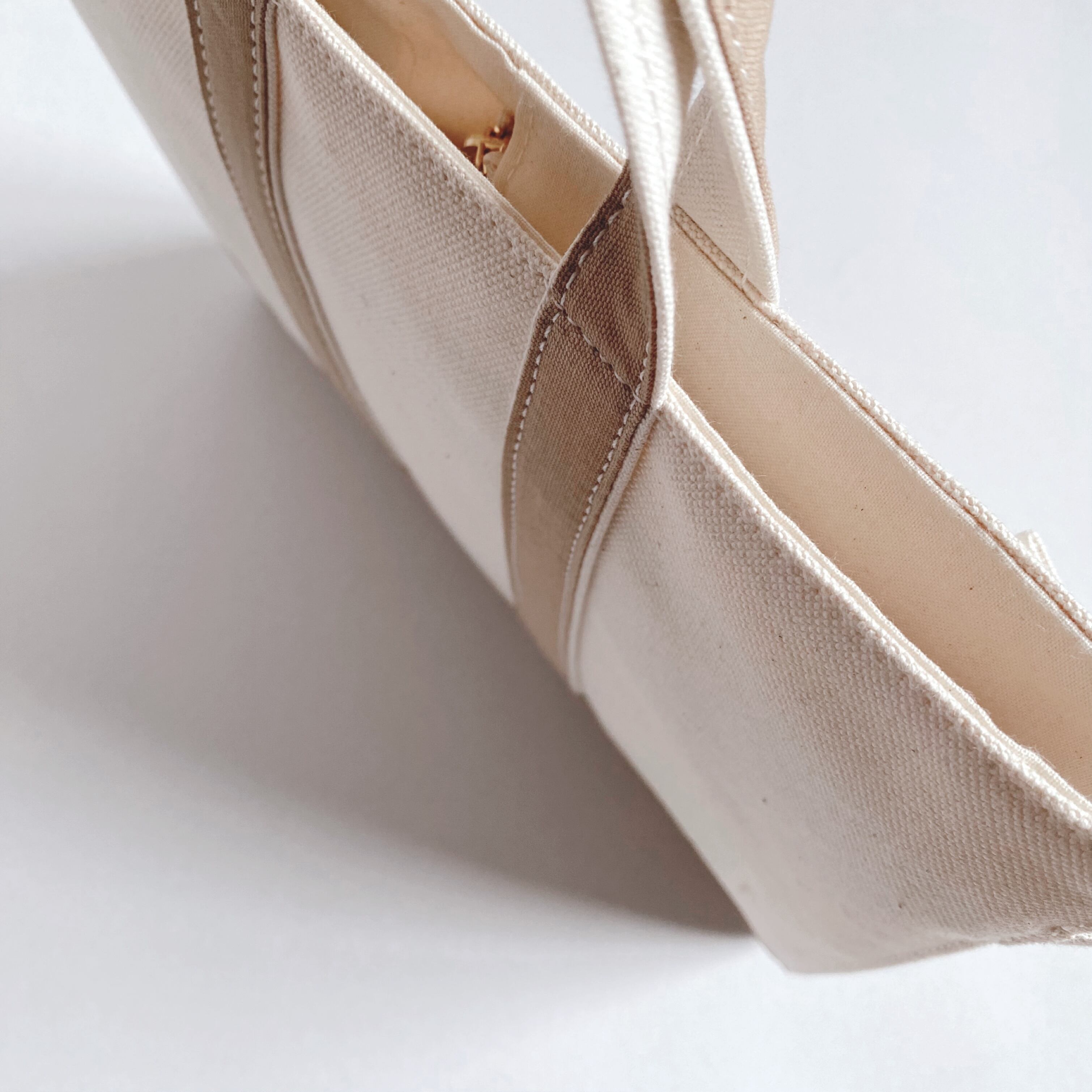 外装の8号帆布には、本革バッグを縫う時にも使用する太いスパン糸で縫製しており、市販の帆布バッグ同様の強度です。
