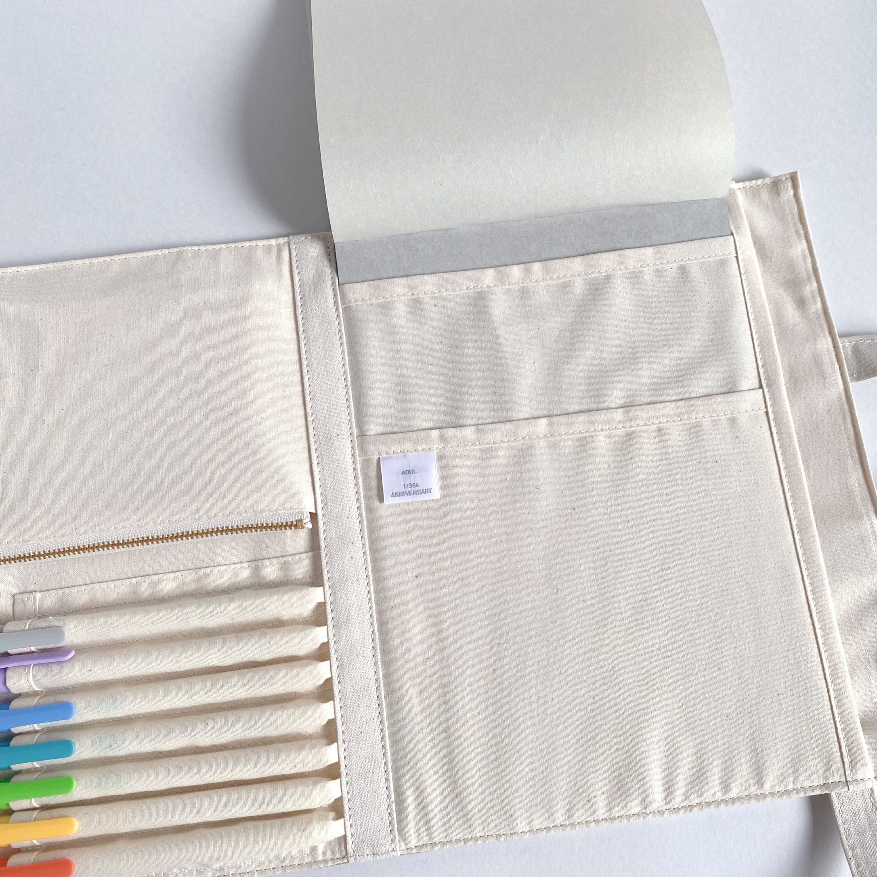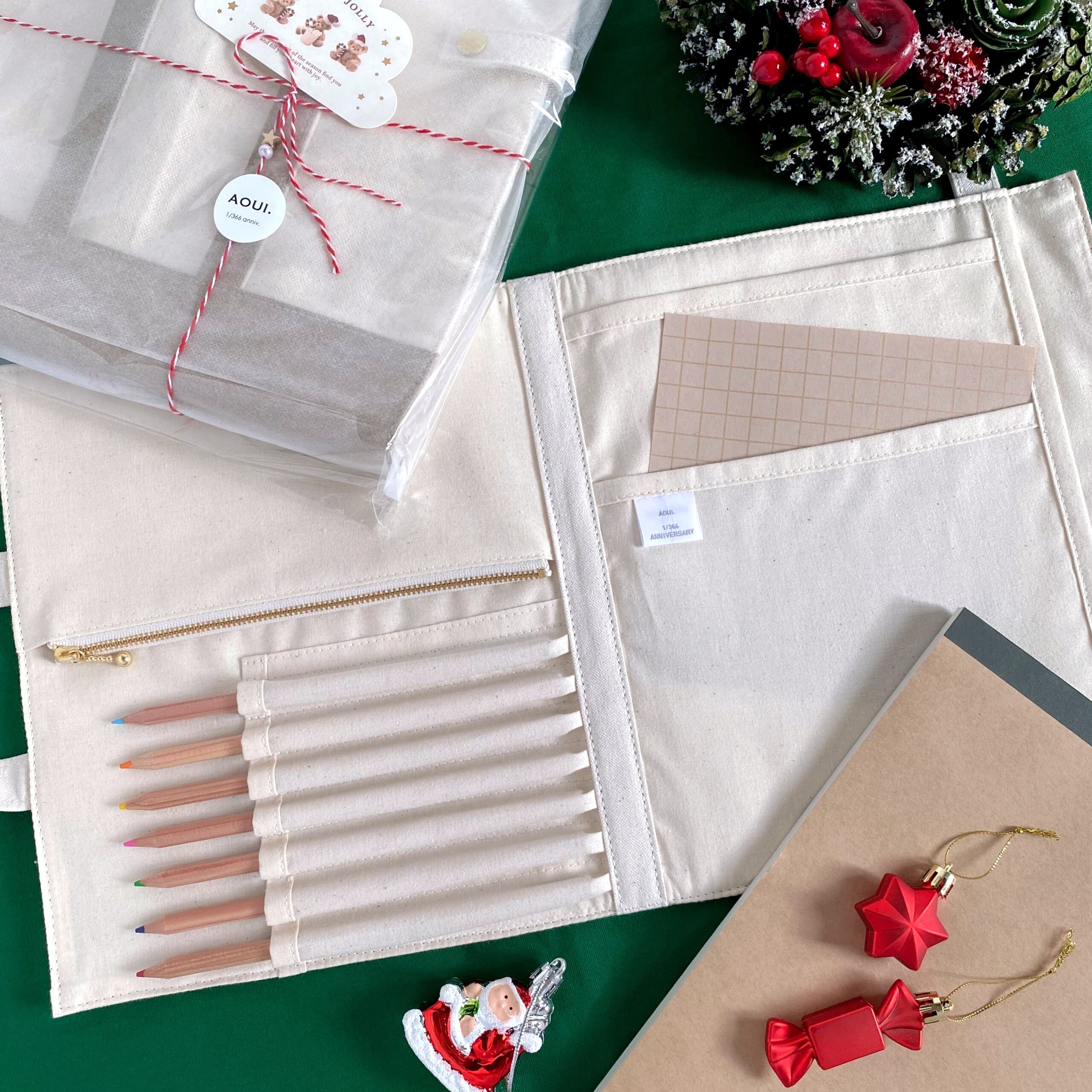 ・折り紙やシール、レターセット等を収納するのにピッタリなサイズのポケット付きです。
