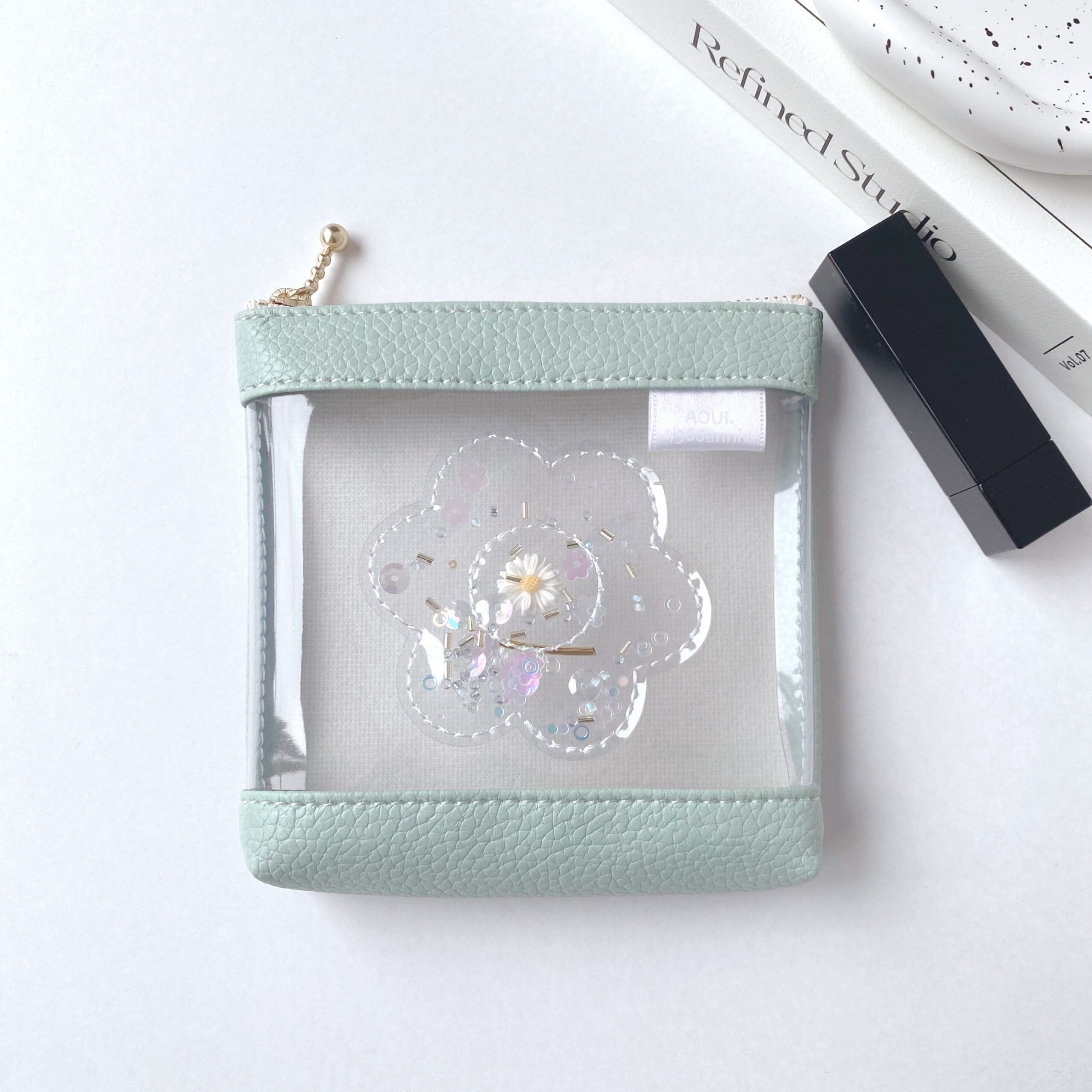 ギフトボックスのようなクリアポーチに仕上げました。