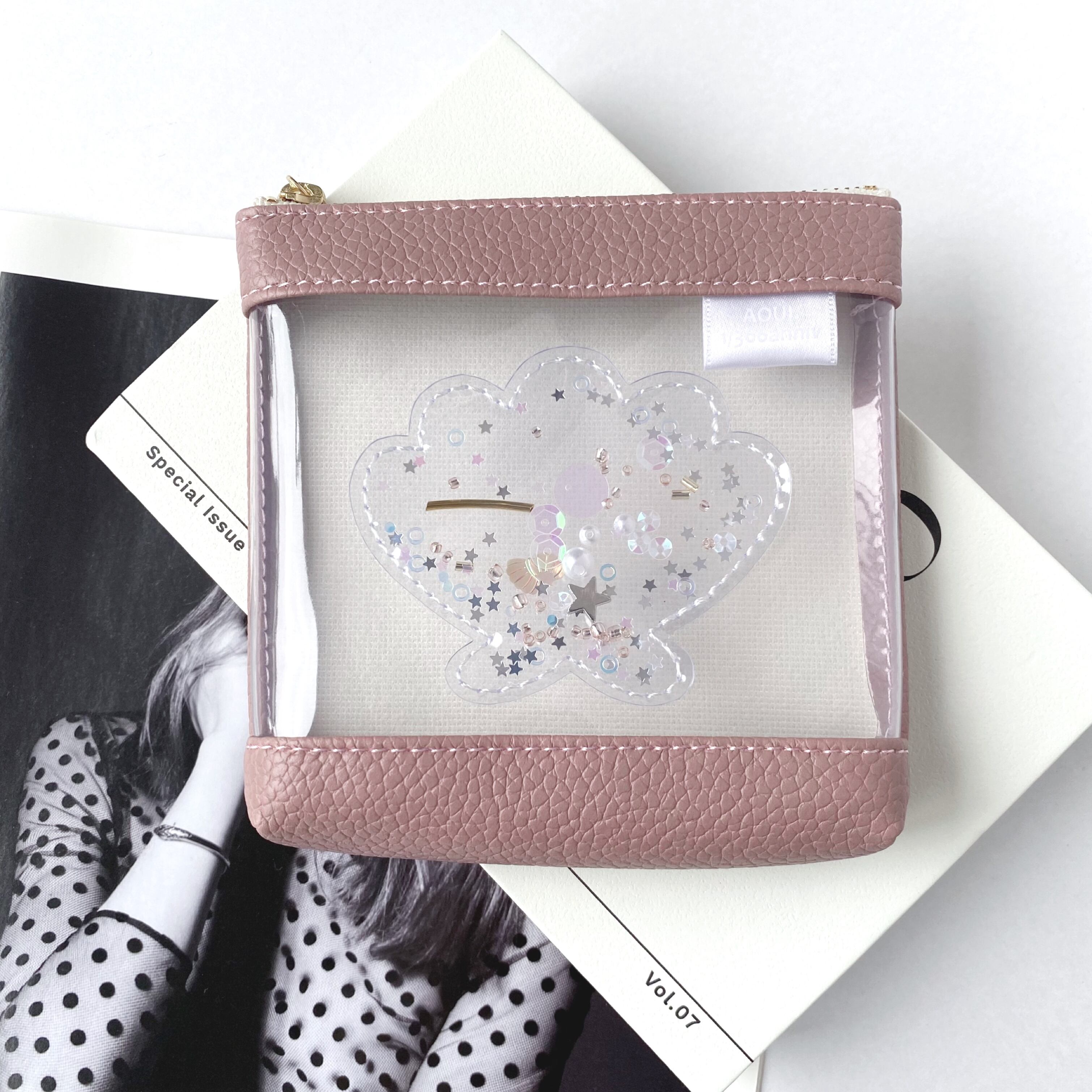 ギフトボックスのようなクリアポーチに仕上げました。